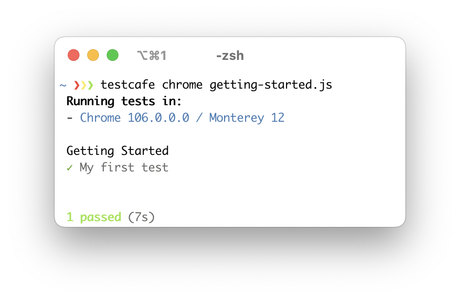 testcafe chrome test1.js