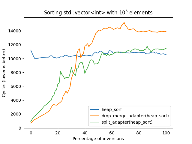 As can be seen above, wrapping heap_sort with either of the adapters makes it