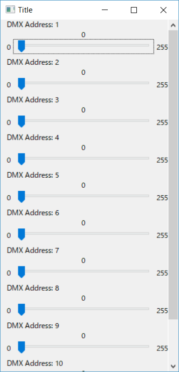 PyDMX_fader.py contains the GUI fader class named Controller().