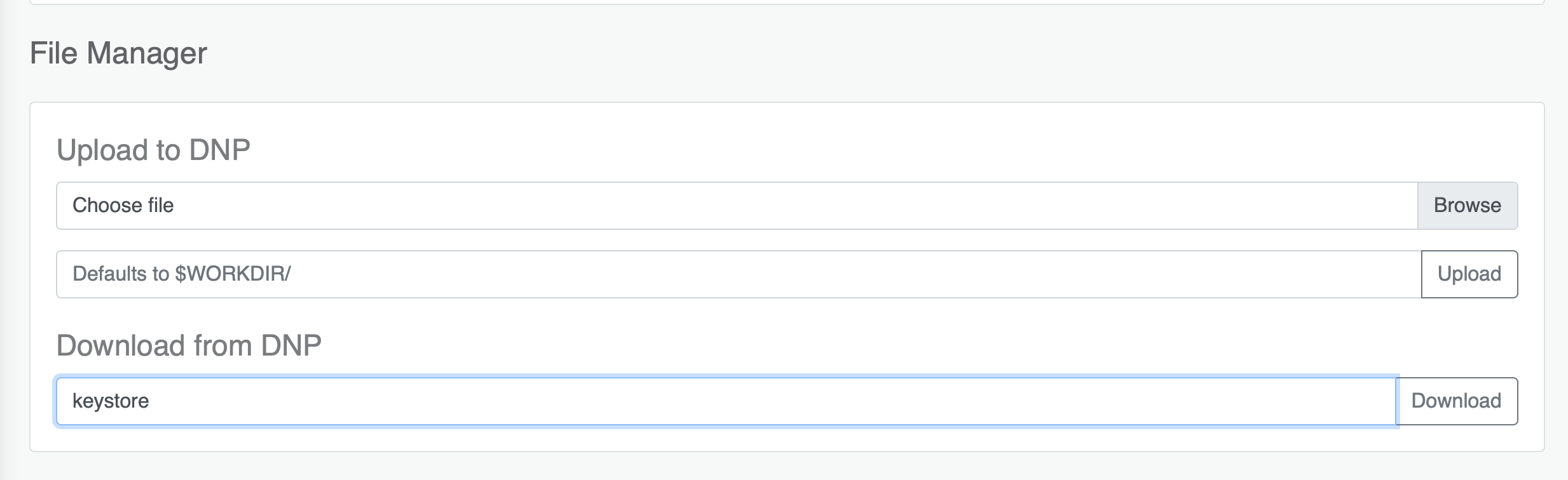 - Write "keystore" in the "Download from DNP" field