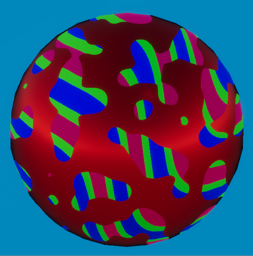 Inspired by this Ducky3D video, this example consists in two shaders: one for creating the colored band stripes and another for making a shell using a replicated model in the same position. Usage: